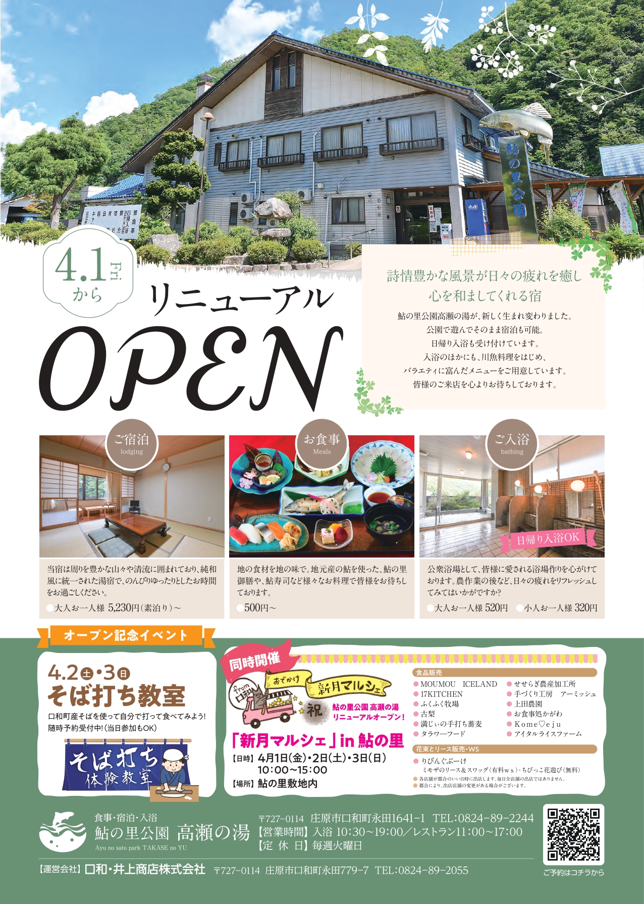 鮎の里公園 高瀬の湯 リニューアルオープン(4月1日)について