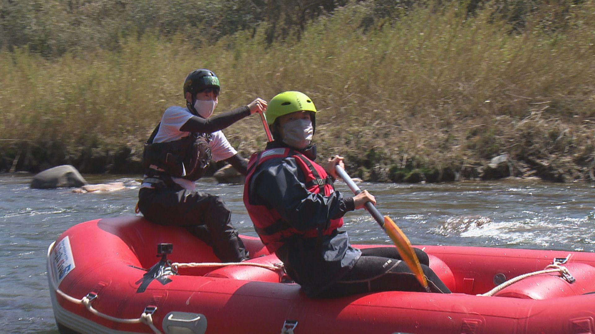 リポーターのゴッホ向井ブルー(カープ芸人)さんが庄原里山ラフティングを体験!
